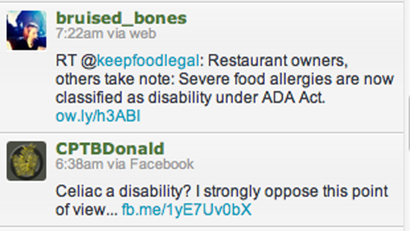 The “substantially limits activity” standard comes from a 2009 revision of the ADA. And as anyone with celiac or severe gluten intolerance knows, even a little gluten accidentally ingested definitely hits that “limits activity” criterion, including missed work and classes.