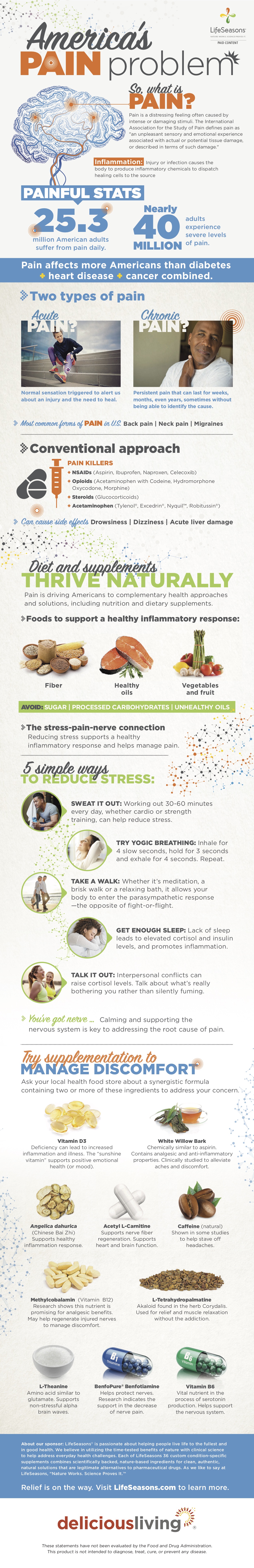 Supplements [Infographic] America’s pain problem By Corrin Salamatian November 28, 2018 0 comment 1 Facebook LinkedIn Twitter Pinterest Print Are you one of more than 25 million Americans who suffer from pain on a daily basis? Learn about the different types of pain (acute and chronic) and natural remedies to help manage discomfort in this infographic. Advertisement 0 comment 1 Facebook LinkedIn Twitter Pinterest Print Corrin Salamatian Related Posts Do-It-Yourself Scalp Massage July 1, 2003 DHA from algae offers heart-healthy benefits May 3, 2012 How to supercharge your immunity November 10, 2015 Supplement Tips November 1, 2004 Rhubarb Strawberry Collagen Jam March 25, 2020 Feeling Out of Joint? Try Glucosamine May 1, 2000 Sharon’s Recommended Doses March 1, 2004 Could probiotics whittle your waist? April 1, 2013 Keeping abreast of iodine February 1, 2002 Is fish oil essential to you? February 13, 2012