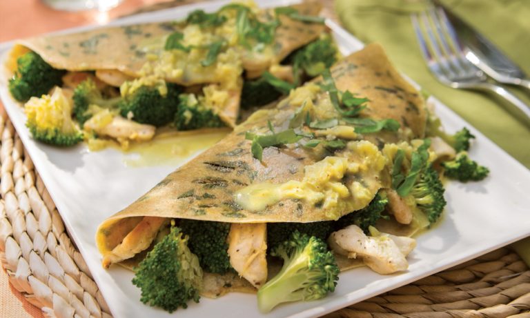 Lemony Basil Chicken Crepes with Curry Sauce