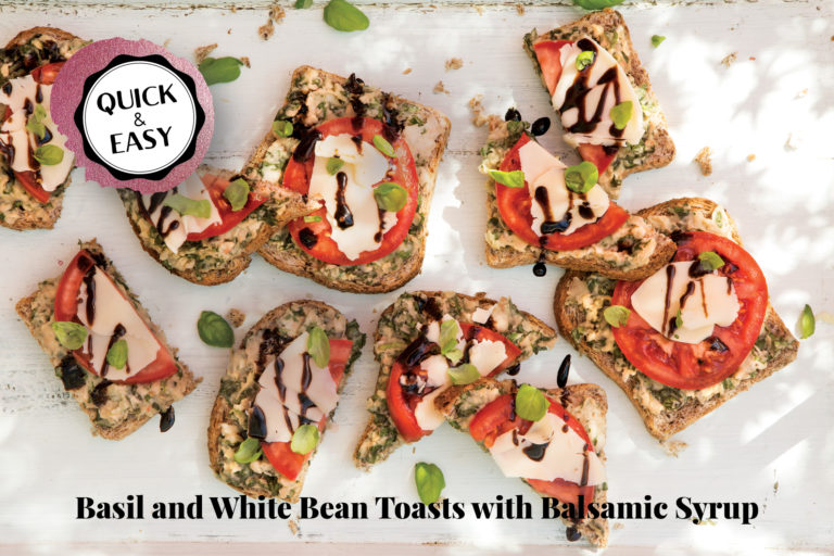 Basil and White Bean Toasts with Balsamic Syrup Vegetarian