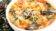 A nutritious soup full of flavorful veggies, aromatic herbs and quinoa—plus Manitoba Harvest’s Hemp Hearts, which are rich in fiber, omegas and plant-based protein….More