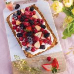 For topping assembly, in medium bowl, whisk to combine skyr or yogurt, honey, and vanilla. Spread yogurt mixture over cooled crust, leaving a small border. Cover and chill in refrigerator until ready to serve, at least 1 hour and up to 3 hours—the time in the fridge makes for a softened crust that’s easier to cut and eat.