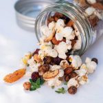 In large bowl, toss together chickpeas, popcorn, almonds, cashews, cherries, apricots, and coconut chips.