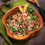 Remove from heat and fold in fresh herbs. Sprinkle with lemon juice, candied chopped almonds, and pomegranate arils or goji berries. Taste and add more seasonings if you wish. Drizzle with a little extra olive oil before serving. Serve warm.