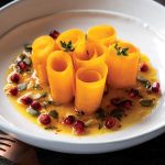 Toss in pomegranate seeds and pumpkin seeds, then using tongs, transfer to serving plates.