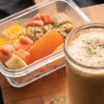 Divide carrots, bell pepper, oranges, bananas, ginger, and hemp seeds among 4 airtight freezer containers. Seal containers shut and place in freezer to freeze contents.