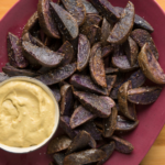 Arrange wedges in an even layer on prepared baking sheet. Bake 25 minutes, shake the pan, and bake an additional 5–10 minutes or until golden brown. To make the Avocado Aioli, combine avocado, mayo, adobo and garlic in a blender until smooth. Serve potato wedges warm with additional salt and Avocado Aioli for dipping.