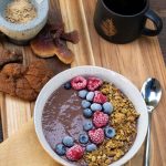 In high-speed blender, add all ingredients except toppings. Whirl at high speed until smooth and creamy. For a thicker consistency, whirl in chia seeds. For a thinner consistency, add more chocolate milk.