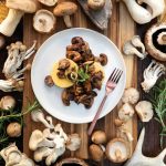Deglaze pan with wine or water, scraping base of pan. Add rosemary and cook over medium heat until liquid is reduced by half, about 1 minute. Add stock and bring to a brief boil and cook until reduced to a thin sauce, about 4 minutes. Whisk in balsamic. Return mushrooms to pan, folding in until glazed. Season to taste with additional balsamic, salt, and pepper, if you wish. For extra glossy richness, stir in butter.