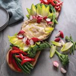 Crudités Board with Roasted Garlic, Shallot, and White Bean Dip