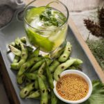 Heat cast iron skillet over high heat. Add edamame and cook, stirring often, until charred on both sides, about 6 to 8 minutes total. Serve warm on platter with dipping sauce.