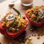 Stuff bell pepper halves with freekeh mixture and top with dollops of yogurt sauce.