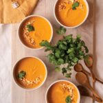 To serve, place cold soup in bowls and garnish with peanuts or sesame seeds and cilantro.