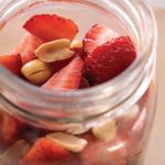 In small wide-mouth jar or cereal bowl, stir together oats, chia seeds, milk mixture, and a pinch of salt. Top with strawberries and peanuts; cover and chill overnight.