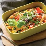 Per serving: 457 calories; 21 g protein; 22 g total fat (4 g sat. fat); 47 g total carbohydrates (5 g sugars, 10 g fiber); 118 mg sodium