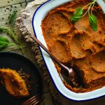 Bring large pot of water to boil and add sweet potatoes and a pinch of salt. Boil for 10 to 15 minutes, until tender. Drain thoroughly. Add 1 Tbsp olive oil, 1/4 tsp salt, and sage; mash until smooth. Spoon sweet potatoes over lentil mushroom mixture. If you like the top crispy, roughen it up with a spoon or fork to create ridges.
