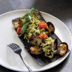 Remove from heat and stir in pesto. Return clams to pot (shelled or unshelled) and serve immediately.