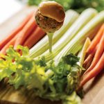 In medium pot on stovetop, place buffalo sauce and bring to a slight simmer. If sauce is too thick, thin with some additional water. Add balls and heat for 2 minutes, turning balls to coat. Serve on platter with carrot sticks and celery sticks and any extra buffalo sauce.