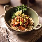 Divide cooked rice among 4 serving bowls and top with chicken-potato mixture, avocado, pumpkin seeds, and cilantro. Squeeze on lime juice.