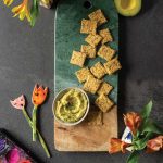 Serve oat and flax crackers alongside avocado ranch dip and enjoy.