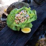 Open-Faced Shrimp Sandwich with Celery, Radish, and Sunflower Shoots