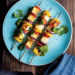 Place baking tray with kebabs in center of preheated oven and bake for 10 minutes. Turn skewers over, then turn oven on to broil. Broil for 2 to 3 minutes until they begin to slightly char. Be careful not to overbake or paneer will be tough. Remove and serve with dollops of Zhoug sauce. Beautiful eye candy with plenty of flavorful heat!