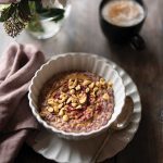Into cooked oats, stir protein powder and peanut butter. Stir in raspberry mixture, then place in serving bowls and top with peanuts.