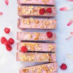 Using parchment paper overhang, lift frozen block out of pan and, using serrated knife, carefully slice into 8 bars. Store in airtight container in freezer for up to 1 month.