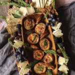 Carefully, with a mandolin, slice potatoes and yams into very thin rounds and place in large mixing bowl. Add 1/4 cup melted butter, balsamic glaze, rosemary, garlic, salt, and pepper. With hands or tongs, toss potatoes and yams to fully coat.