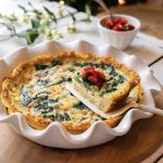 To bowl with cooled quinoa, add 1 egg and beat well with fork until well combined. Transfer quinoa mixture to prepared pie plate and evenly press into bottom and up the sides. Bake in preheated oven for 20 minutes. Press down crust with the back of a spoon to compact and avoid any leaks when pouring on the quiche filling. Set crust aside to cool for 15 minutes. Reduce oven temperature to 350 F.