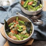 Per rice bowl serving: 437 calories; 40 g protein; 16 g total fat (3 g sat. fat); 31 g total carbohydrates (4 g sugars, 5 g fiber); 92 mg sodium Per serving of dressing: 169 calories; 13 g protein; 10 g total fat (3 g sat. fat); 9 g total carbohydrates (4 g sugars, 3 g fiber); 172 mg sodium