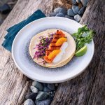 Salmon Tacos with Red Cabbage and Orange Slaw with Lime Yogurt