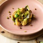 Remove from heat, toss in toasted pistachios, and transfer into a serving dish. Top with lemon zest.
