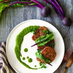 Savory Chickpea and Beet Green Patties with Parsley-Caper Salsa Verde