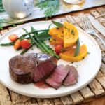 Slice against the grain and transfer pieces to serving platter. Add juices from cutting board to sage and red wine sauce and drizzle over meat.