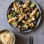 Sheet-Pan Sprouted Tofu, Mushrooms, and Potstickers with Bok Choy