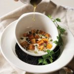Into serving bowl, spoon Greek yogurt. Top with sweet potatoes and raw pumpkin seeds. Combine olive oil and cilantro together and drizzle overtop. To finish, sprinkle with mixture of nigella seeds and hemp hearts.