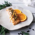 Sockeye Salmon Steamed in Parchment with Juniper, Orange, and Rosemary