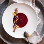 In high-speed blender, in batches, purée mixture until smooth and creamy. Ladle into bowls and serve hot garnished with Dukkah, orange slices, arugula, and pinches of crushed red pepper flakes, if you wish.