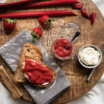 In medium saucepan, stir together strawberries, rhubarb, lemon juice, and maple syrup over medium heat. Let mixture come to a simmer, stirring occasionally.