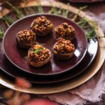 In large saucepan over medium-high heat, add olive oil, onions, carrots, celery, garlic, thyme, and fennel seeds. Sauté for 10 minutes. Add in mushroom stems, and cook until water is absorbed, approximately 10 minutes. Add in lentils, bread cubes, and vegetable stock and cook until lentils are warmed through, and stock is absorbed.