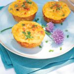 In large bowl, whisk together eggs and milk. Stir in red bell pepper, cheese, thyme, remaining 1/4 tsp salt, and black pepper. Stir in cooked vegetables. Divide among 16 mini-sized greased muffin cups. Bake until egg cakes are set, about 15 minutes. Let cool for a couple of minutes before unmolding.