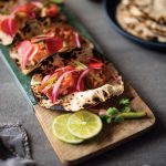 Tandoori Salmon Tacos with Spicy Lime-Pickled Radish and Onion