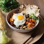 To serve, place a mound of the rice and three sisters mixture on each of 4 plates and top with a fried egg. Serve with warm tortillas.