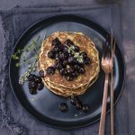 Serve pancakes topped with berry sauce.