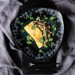 To serve, place room temperature crepe on small plate. Top with a generous scoop of tofu scramble. Dot with hot sauce and cilantro. Garnish as desired.