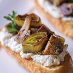 Spread ricotta onto baguette slices and top with mushrooms and 2 or 3 leek slices. Drizzle tartines with remaining 1 tsp honey and serve.