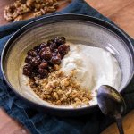 Place yogurt in serving bowls and top with cherry compote and walnuts.