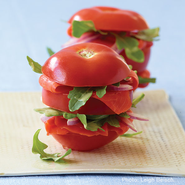 Tomato, Smoked Salmon, and Arugula Stacks