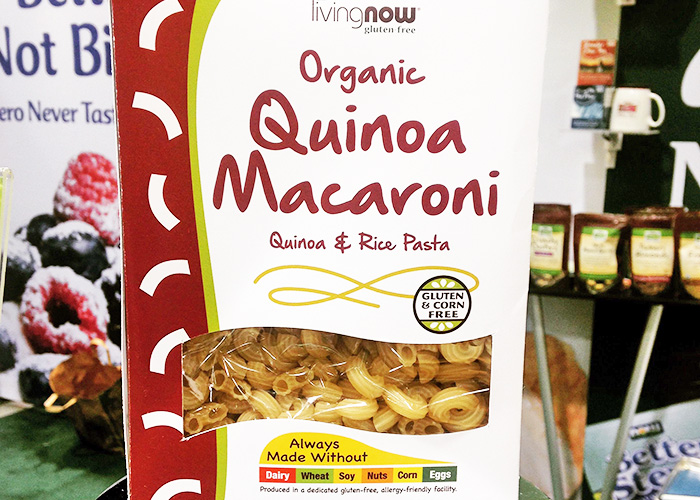 Now Food's new quinoa and rice pasta—scheduled to hit stores this May—is formulated without dairy, wheat, soy, nuts, eggs and even corn. USDA Organic and certified gluten free, this pasta offers excellent texture.